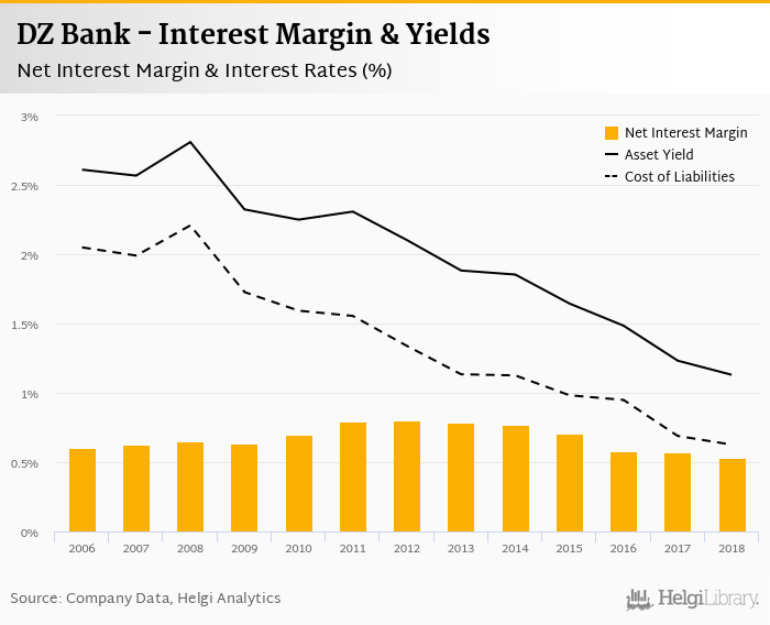 DZ Bank's net interest margin amounted to 0.532% in 2018, down from 0.575% compared to the previous year.