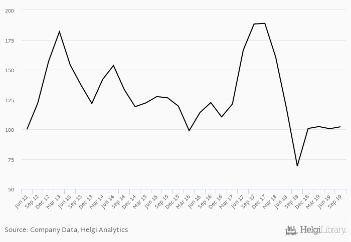 Over the last five years, the stock has depreciated by 31.6 implying an annual average growth of -7.31% In absolute terms, the value of the company fell by USD -158 mil.