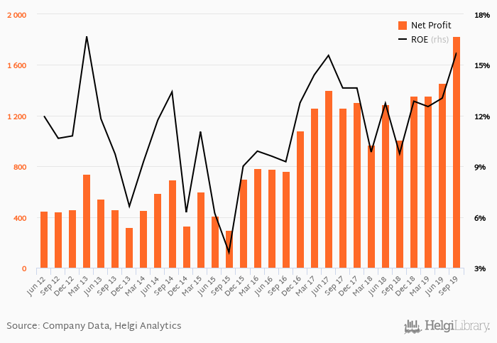 The bank generated its shareholders an average return on equity of 11.1% in the last five years with maximum at 15.7% and minimum at 3.92%.