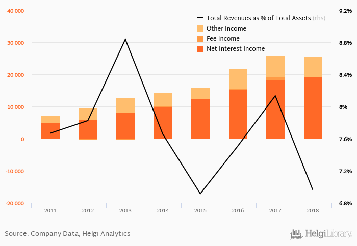 Bank's total revenues accounted for 6.96% total assets in 2018, down from 8.13% a year earlier.
