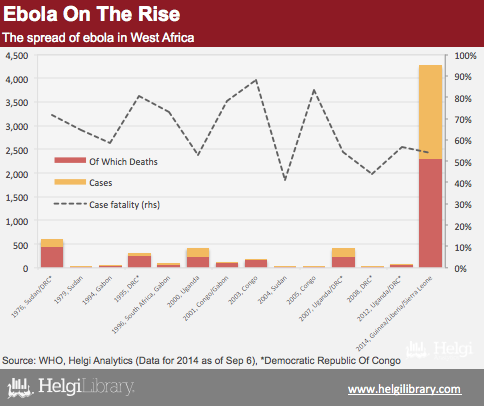 According to the data of World Health Organization (WHO), the latest outbreak has already affected more than 4,269 people (probable, confirmed and suspected cases) causing at least 2,288 deaths mainly in Guinea, Liberia and Sierra Leone deaths (data as of Sep 6, 2014).