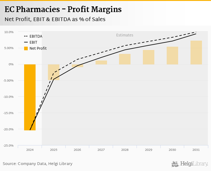 EC Pharmacies made a net profit of EUR -0.755 mil with revenues of EUR 3.71 mil in 2024, up by 0% and up by 0%, respectively, compared to the previous year.