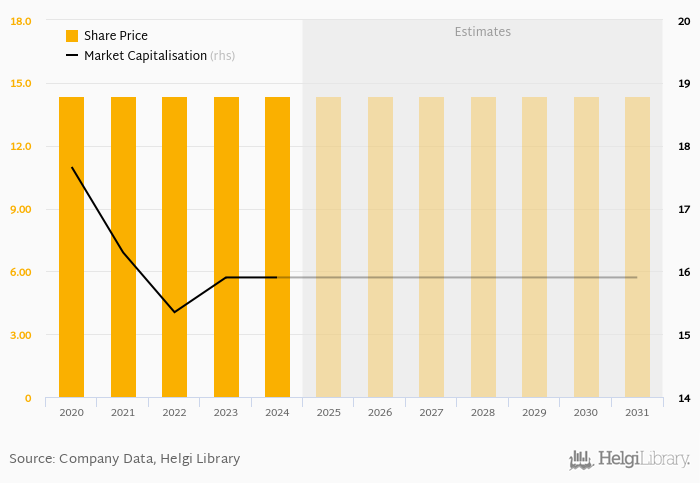 Historically, between 2020 and 2024, the EC Pharmacies’s stock price reached a high of EUR 14.4 in 2024 and a low of EUR 14.4 in 2020.