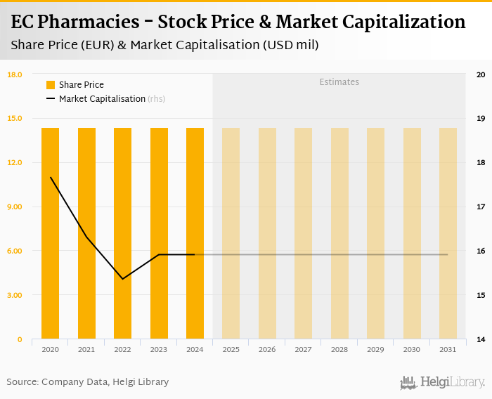 EC Pharmacies stock traded at EUR 14.4 per share at the end 2024 implying a market capitalization of USD 15.9 mil.