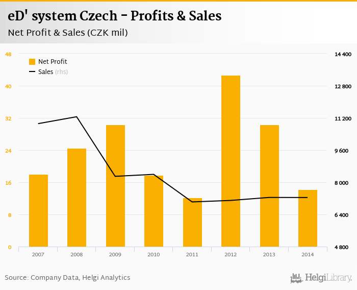 eD' system Czech made a net profit of CZK 14.3 mil in 2014, down 53% compared to the previous year. Total sales reached CZK 7,241 mil, which is down 0.055% when compared to the previous year.