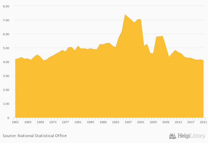Historically, egg consumption per capita in Honduras reached an all time high of 7.38 kg in 1996 and an all time low of 4.08 kg in 1970. When compared to Honduras's main peers, egg consumption per capita in Belize amounted to 4.77 kg, 13.1 kg in Guatemala, 21.4 kg in Mexico and 15.8 kg in USA in 2021.