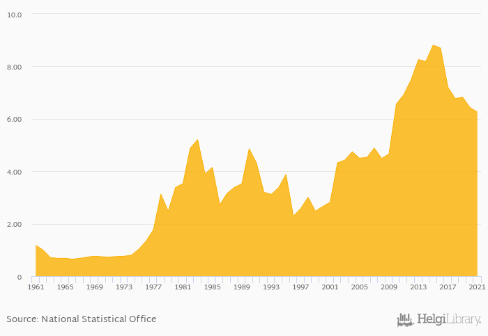 | Portugal | kg | 10.4 | 9.51 | 10.2 | 11.0 | 11.2 | ||||||||||||||||