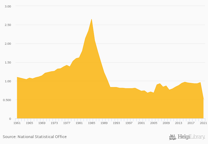 Historically, egg consumption per capita in Benin reached an all time high of 2.65 kg in 1985 and an all time low of 0.520 kg in 2021. When compared to Benin's main peers, egg consumption per capita in Burkina Faso amounted to 1.15 kg, 0.230 kg in Niger, 2.71 kg in Nigeria and 1.81 kg in Togo in 2021.
