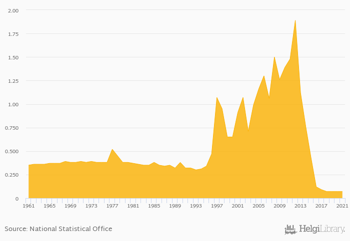 | Zimbabwe | kg | 1.05 | 1.18 | 1.32 | 1.35 | 1.24 |