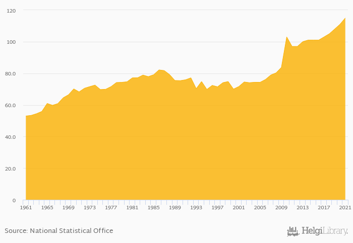 Historically, total egg consumption in Switzerland reached an all time high of 115 kt in 2021 and an all time low of 53.0 kt in 1961. When compared to Switzerland's main peers, total egg consumption in Austria amounted to 127 kt, 893 kt in France, 1,331 kt in Germany and 671 kt in Italy in 2021.