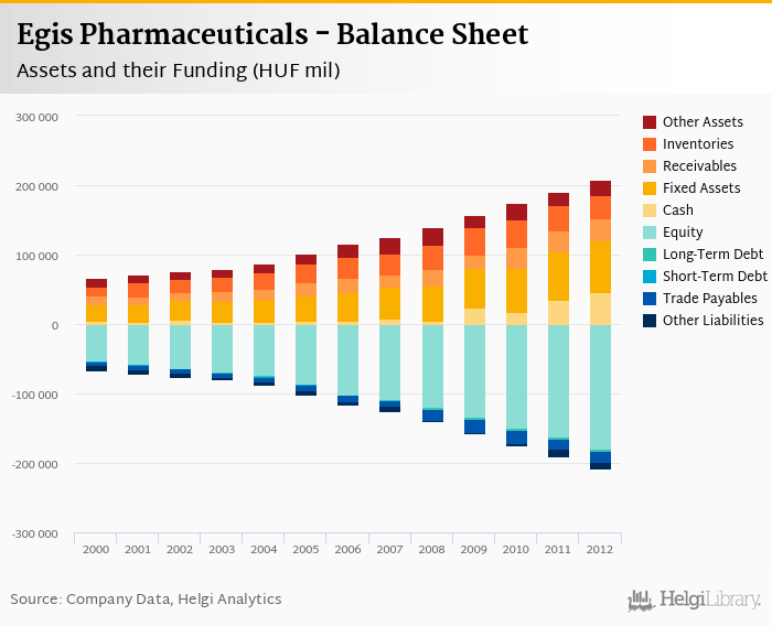 Egis Pharmaceuticals's total assets reached HUF 208,238 mil at the end of 2012, up 9.19% compared to the previous year.