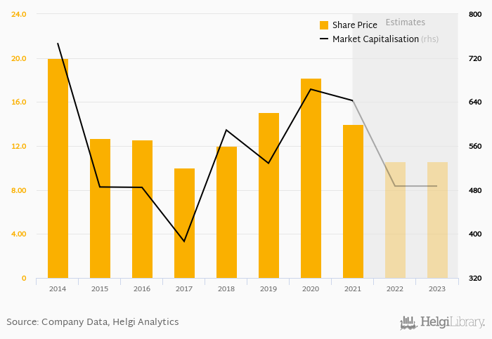 Since the end of 2016, stock has appreciated by 11.2% implying an annual average growth of 2.14% In absolute terms, the value of the company rose by USD 158 mil.