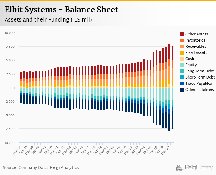 Elbit Systems's total assets reached ILS 7,580 mil at the end of 2Q2020, up 12.3% compared to the previous year.