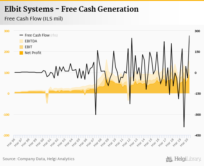 Elbit Systems made a net profit of ILS 89.3 mil with revenues of ILS 1,079 mil in 2Q2020, up by 65.9% and up by 1.45%, respectively, compared to the previous year. This translates into a net margin of 8.27%.
