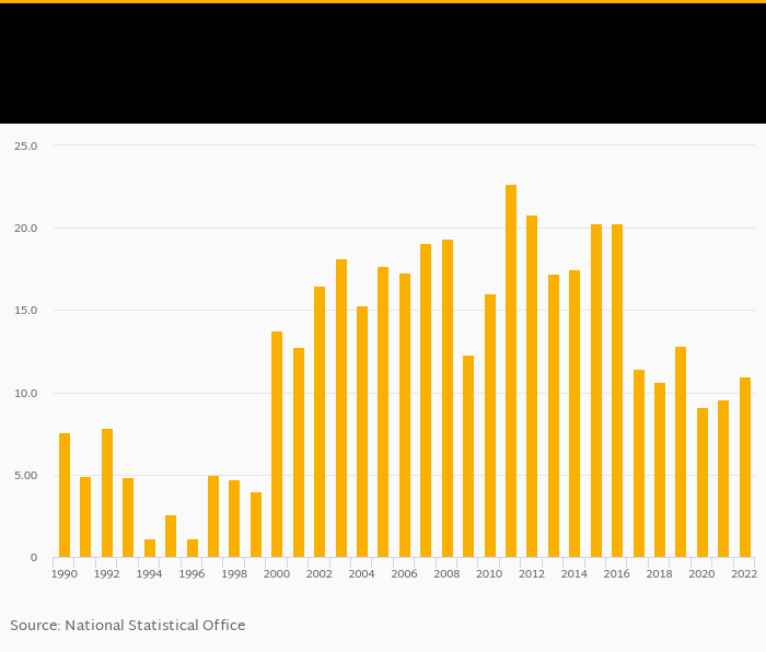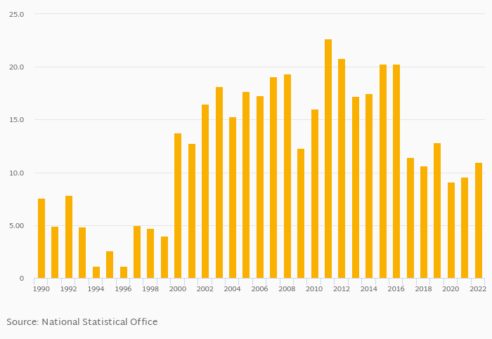 | Hungary | % | 15.5% | 15.1% | 12.2% | 11.0% | 8.60% | ||||||||||||||||