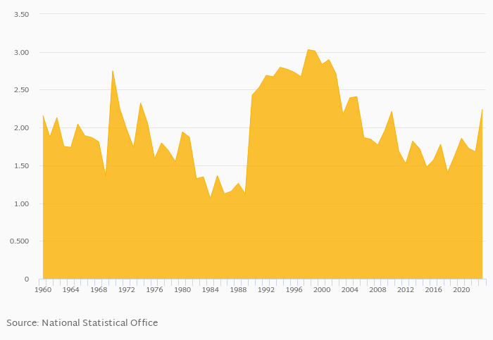 | Czechia | % | 3.49% | 3.04% | 3.65% | 4.21% | 4.26% | ||||||||||||||||