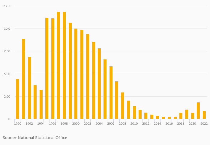 | Kyrgyzstan | % | ... | ... | ... | 0.158% | 0.200% | 0.213% | 0.225% | 0.344% | |||||||||||||