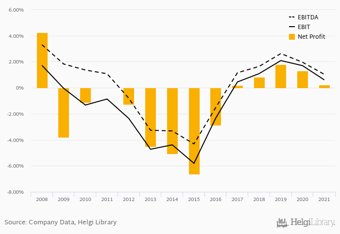 On the operating level, the EBITDA margin reached 1.03% and EBIT amounted to 0.605% of sales in 2021.