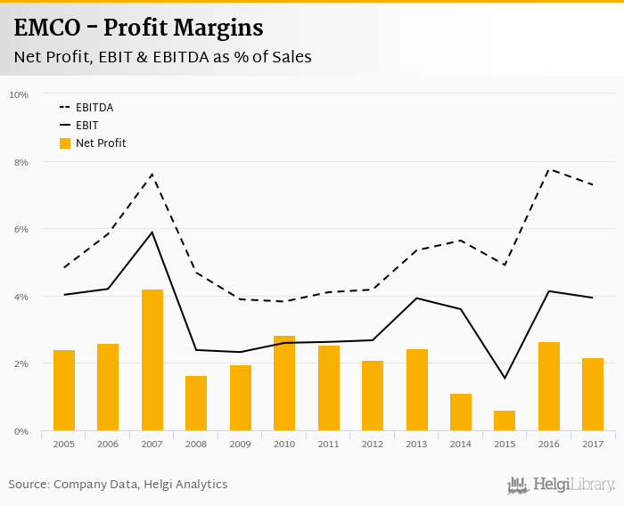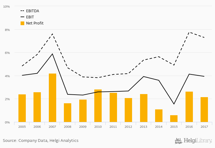 On the operating level, the EBITDA margin reached 7.29% and EBIT amounted to 3.94% of sales in 2017.