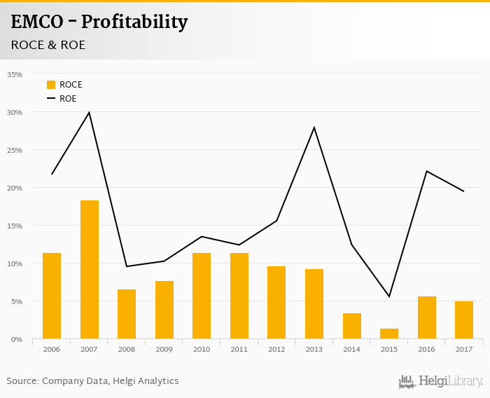 The result implies a return on equity of 19.4% and a return on invested capital of 5.03% in 2017. That is compared to an average of 17.5% and 4.95% over the last five years.