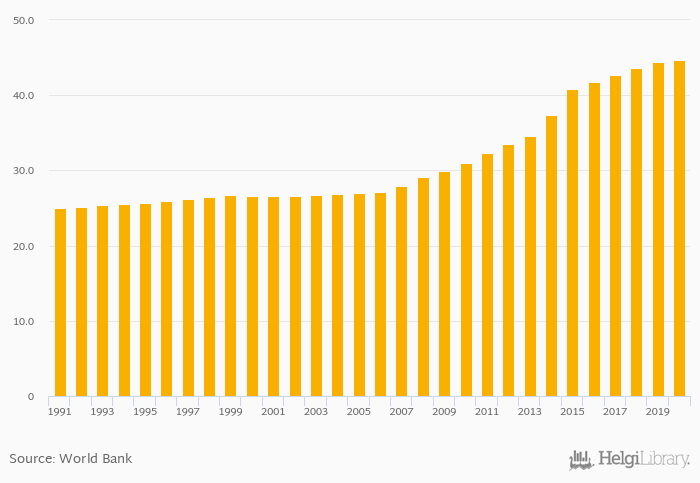 | Nigeria | % | 40.0% | 39.4% | 39.0% | 38.4% | 38.7% | ||||||||||||||||