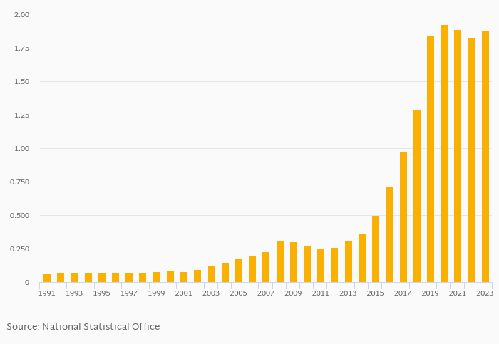 | Zimbabwe | % | 0.977% | 1.29% | 1.84% | 1.93% | 1.89% |