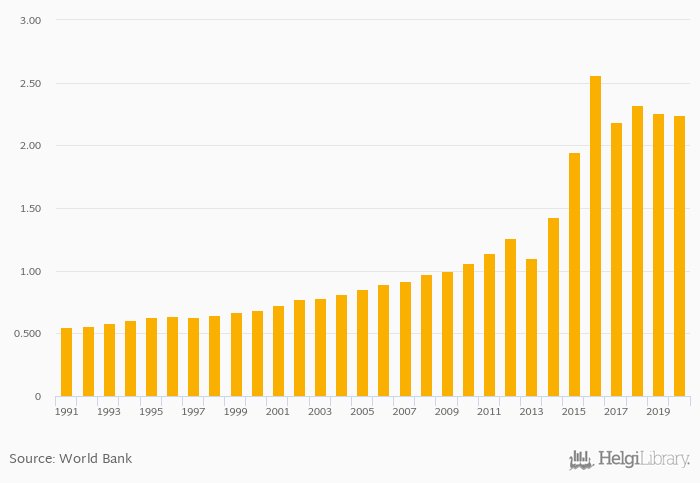 | Senegal | % | 2.92% | 2.75% | 2.57% | 2.29% | 2.08% | ||||||||||||||||