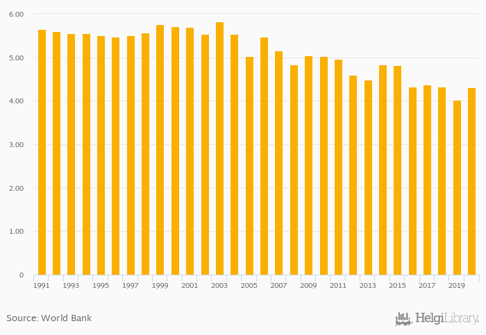 | Czechia | % | 4.37% | 4.31% | 4.01% | 3.98% | 3.68% | ||||||||||||||||