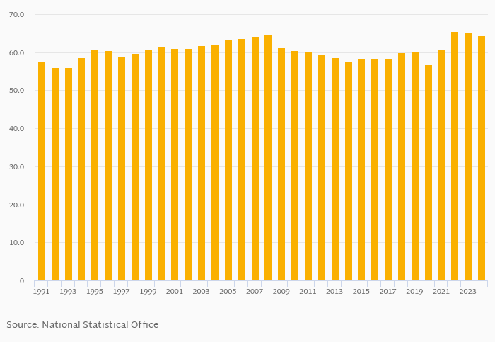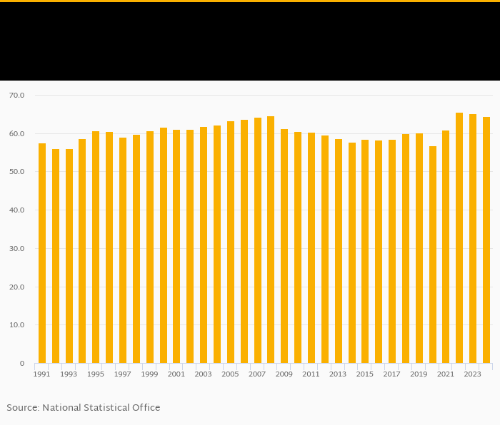 | Vietnam | % | 52.6% | 54.0% | 49.3% | 42.5% | 41.4% |