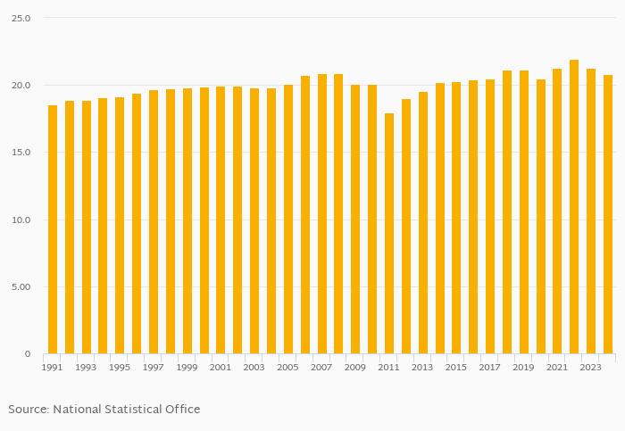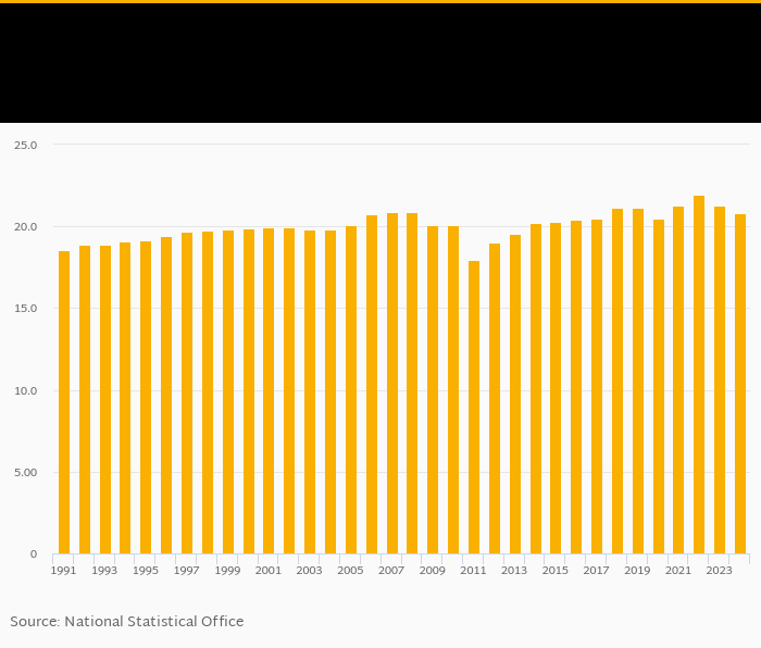 | Tunisia | % | 21.1% | 21.1% | 20.4% | 21.3% | 22.0% | ||||||||||||||||