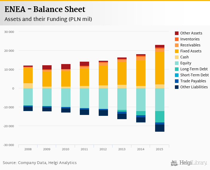 ENEA's total assets reached PLN 22,989 mil at the end of 2015, up 27% compared to the previous year.