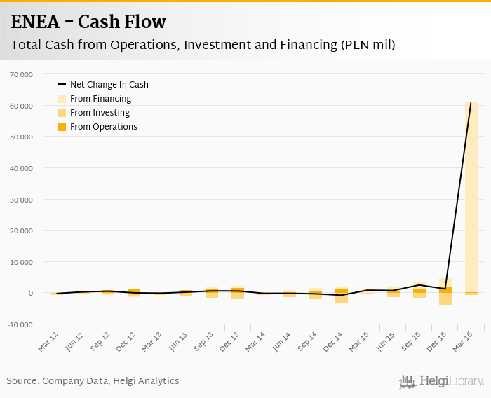 Cash from financing amounted to PLN 60,967 mil, so the company generated PLN 60,789 mil net cash in 1Q2016.