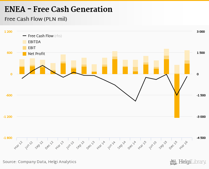 ENEA made a net profit of PLN 290 mil with revenues of PLN 2,937 mil in 1Q2016, up by 9.45% and up by 20%, respectively, compared to the previous year. This translates into a net margin of -3.62%.
