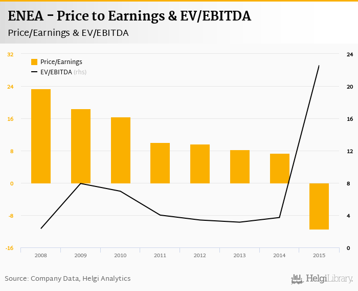ENEA stock traded at EUR 11.3 per share at the end 2015 translating into a market capitalization of USD 1,279 mil.