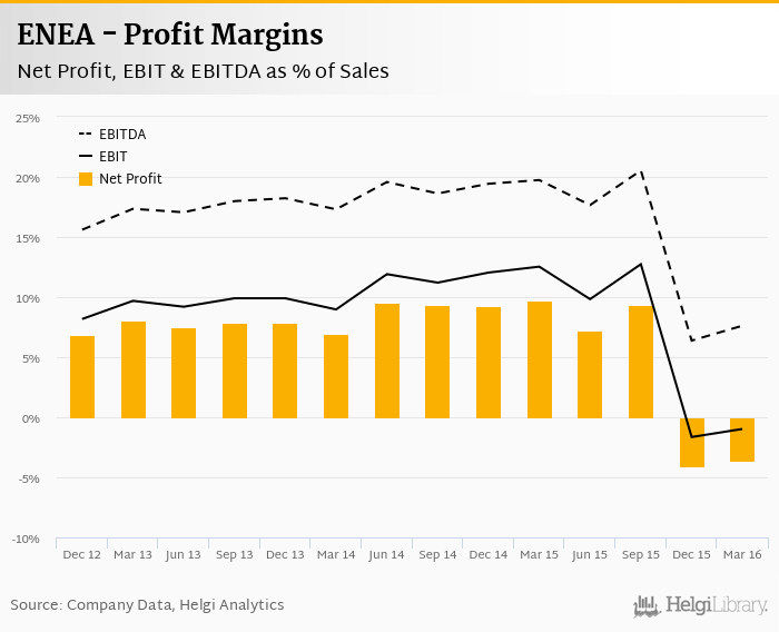 On the operating level, the EBITDA margin reached 7.62% and EBIT amounted to -0.975% of sales in 1Q2016.