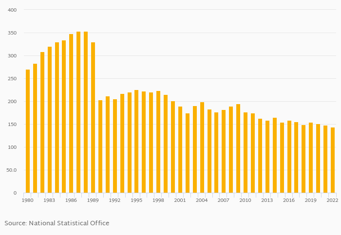| Energy Use (kg of Oil Equivalent) Per USD 1,000 of GDP | Unit | 2002 | 2003 | 2004 | 2005 | 2006 | 2007 | 2008 | 2009 | 2010 | 2011 | 2012 | 2013 | 2014 | 2015 | 2016 | 2017 | 2018 | 2019 | 2020 | 2021 | 2022 |