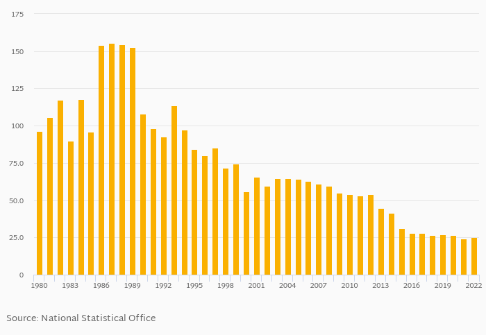 | Malta | kg | 28.1 | 26.4 | 27.0 | 26.5 | 24.0 | ... | |||||||||||||||