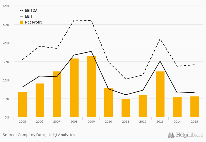 On the operating level, the EBITDA margin reached 28.2% and EBIT amounted to 13.3% of sales in 2015.