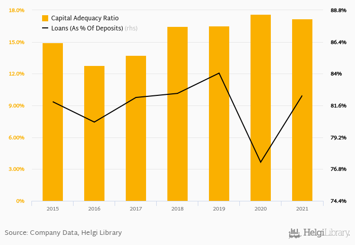 Bank's loan to deposit ratio reached 82.4% at the end of 2021, up from 77.3% when compared to the previous year.