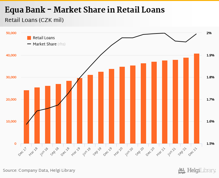 Equa Bank's retail loans reached CZK 40,785 mil in the fourth quarter of 2021, up 4.58% compared to the previous year.