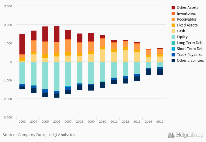 Net debt against equity is down 0.308 pp from five years ago (-0.625). The ratio against EBITDA increased from -16.1x seen in 2010 to -2.00x.