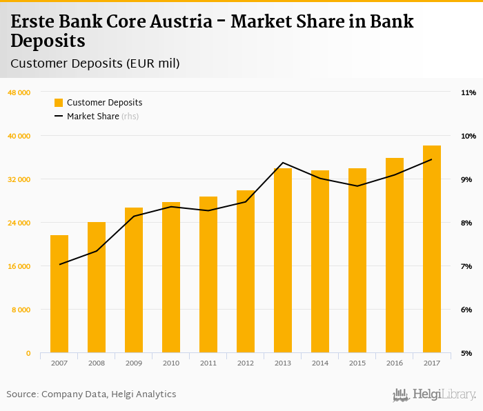 Erste Bank Core Austria's customer deposits reached EUR 38,250 mil in 2017, up 6.58% compared to the previous year.