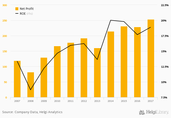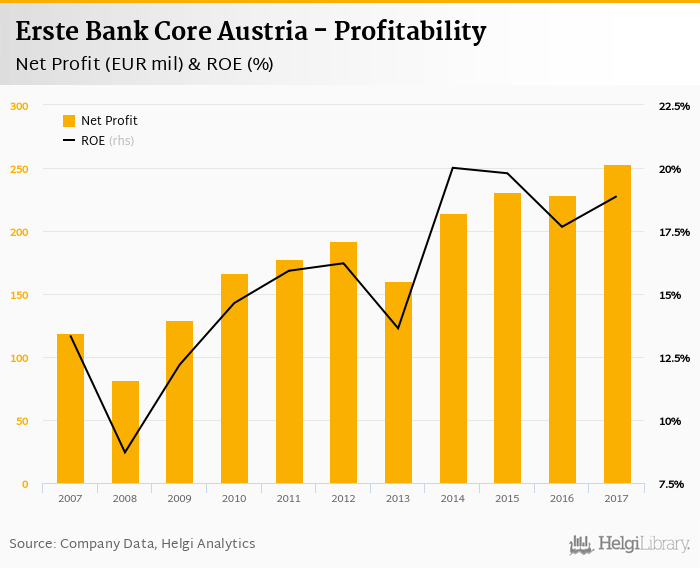 Erste Bank Core Austria made a net profit of EUR 253 mil in 2017, up 10.9% compared to the previous year. This implies a return on equity of 18.9%.