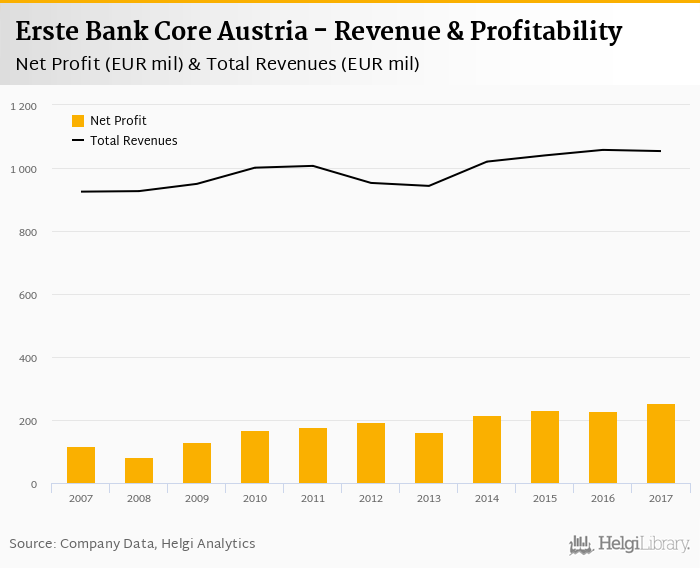 Erste Bank Core Austria made a net profit of EUR 253 mil under revenues of EUR 1,054 mil in 2017, up 10.9% and -0.357% respectively compared to the previous year.