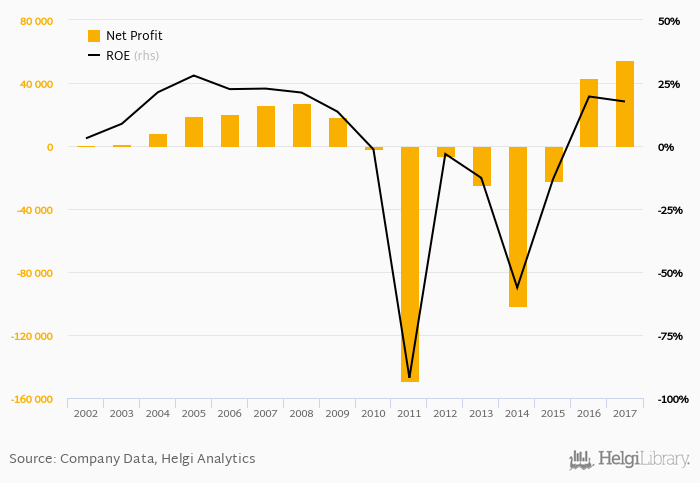 The bank generated its shareholders an average return on equity of -8.92% in the last five years with maximum at 19.6% and minimum at -56.2%