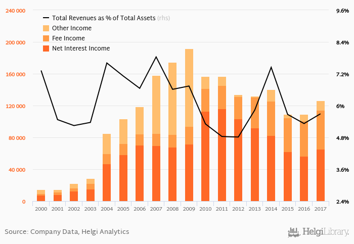 Bank's total revenues accounted for 5.69% total assets in 2017, up from 5.32% a year earlier.