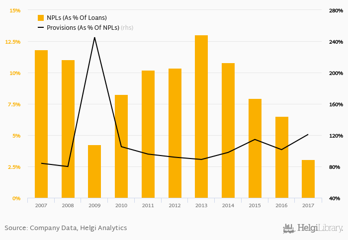 Provision coverage amounted to 121% at the end of 2017, up from 102% compared to a year earlier.