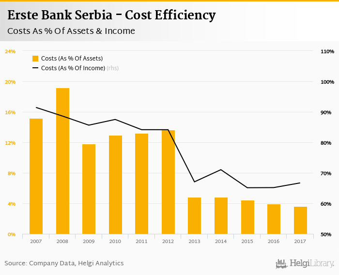 Erste Bank Serbia's cost to income ratio reached 66.7% in 2017, up from 65.2% compared to the previous year.