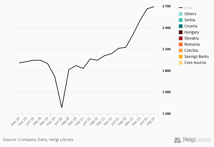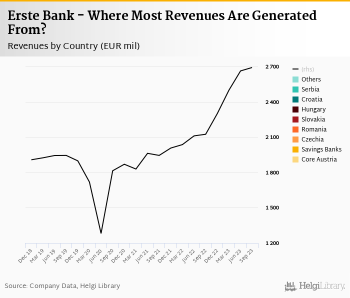 Erste Group Bank generated total banking revenues of EUR 2,692 mil in 3Q2023, up 26.7% when compared to the same period of last year and up 1.1% when compared to the previous quarter.