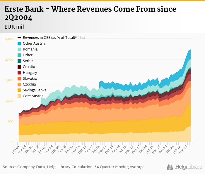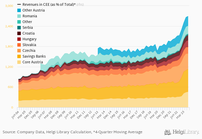 CEE operations accounted for 47.3% of group's revenues in the last quarter, down from 51.4% seen five years ago. That's compared to 50.5% of the group's profits, 46.1% of assets and 45.6% of risk-weighted assets allocated in the CEE region at the end of September 2023.